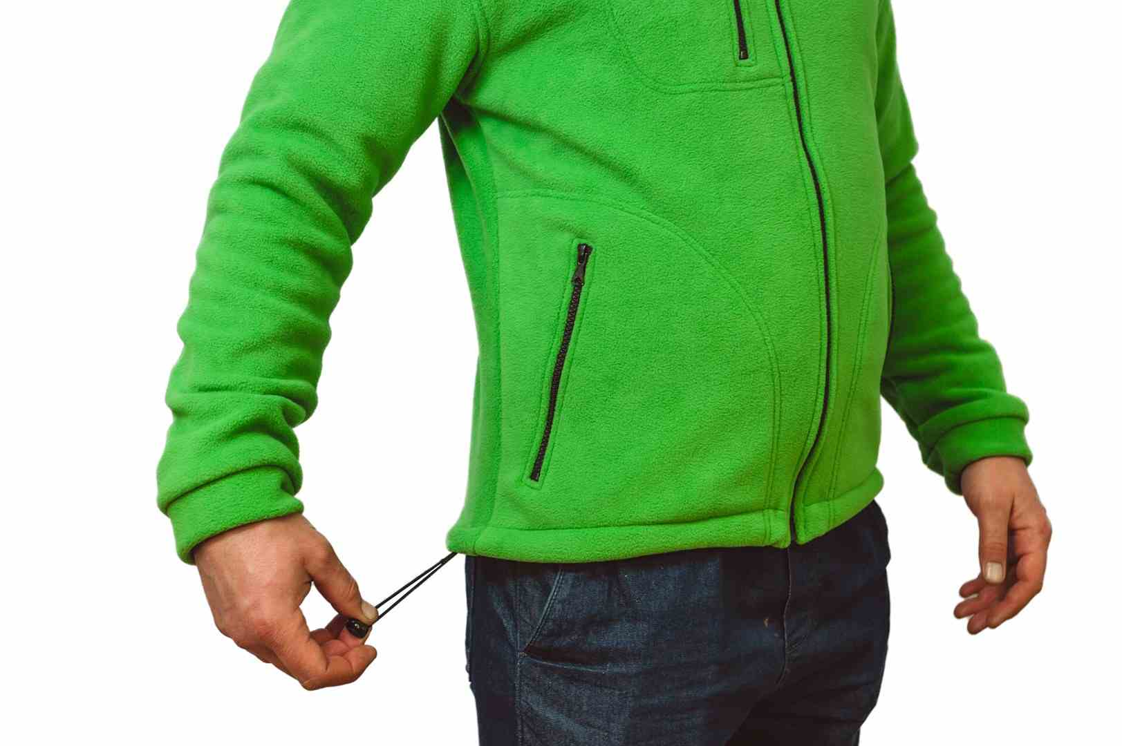 Bluza wykonana z POLARU. Polar z wykończeniem antypilingowym. Polar jest gruby i posiada bardzo dobre właściwości cieplne, przyjemny w dotyku, 2 kieszenie zasuwane zamkami błyskawicznymi oraz dodatkowa kieszeń na piersi z zamkiem. W dolnej częśći możliwa regulacja na gume ze stoperami. Bluza na karku, barkach i łokciach posiada wzmocnienia. Możliwe zastosowanie dowolnej kolorystyki i łączenia kolorów w produkcje: