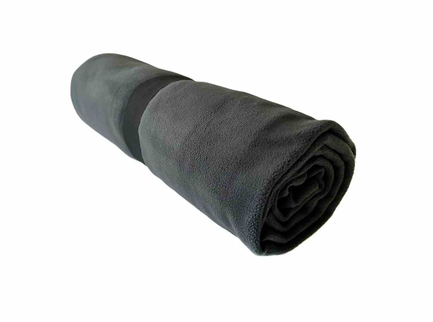 Koc wykonany z grubego polaru, gładkie nie obszywane brzegi koca, elastyczna guma zabezpieczająca przed rozwinięciem.