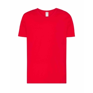 T-shirt męski typu v-neck. Dopasowany do sylwetki. Wzmocniony lycrą ściągacz. Taśma wzmacniająca. 100% bawełna..