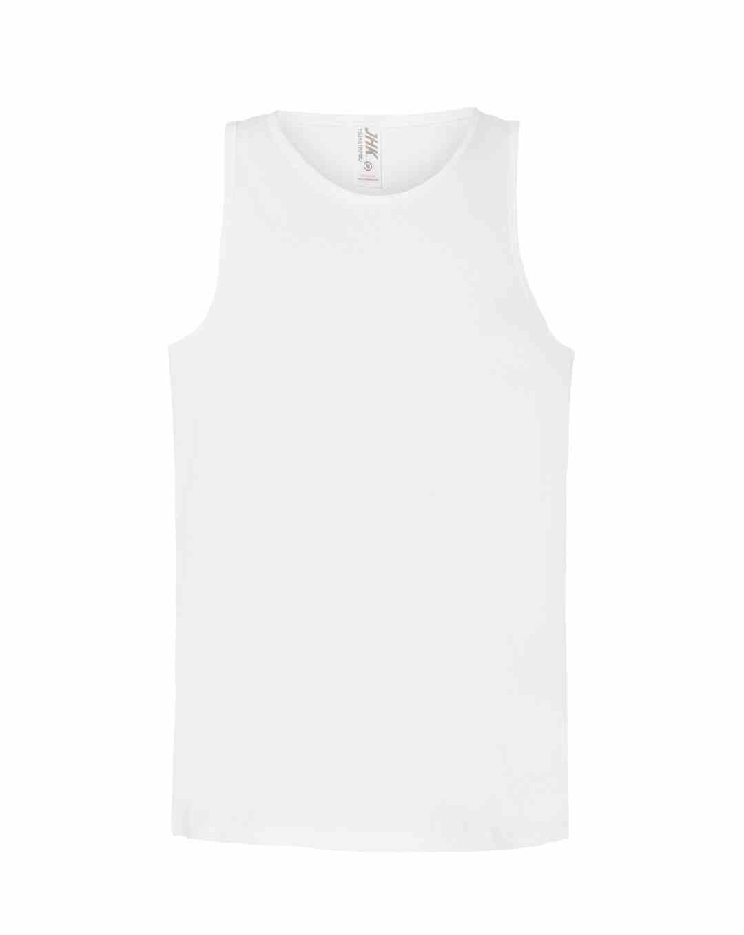 T-shirt męski bez rękawów. Single jersey. Podwójne szwy na ramionach i spodzie koszulki. 100% bawełna.