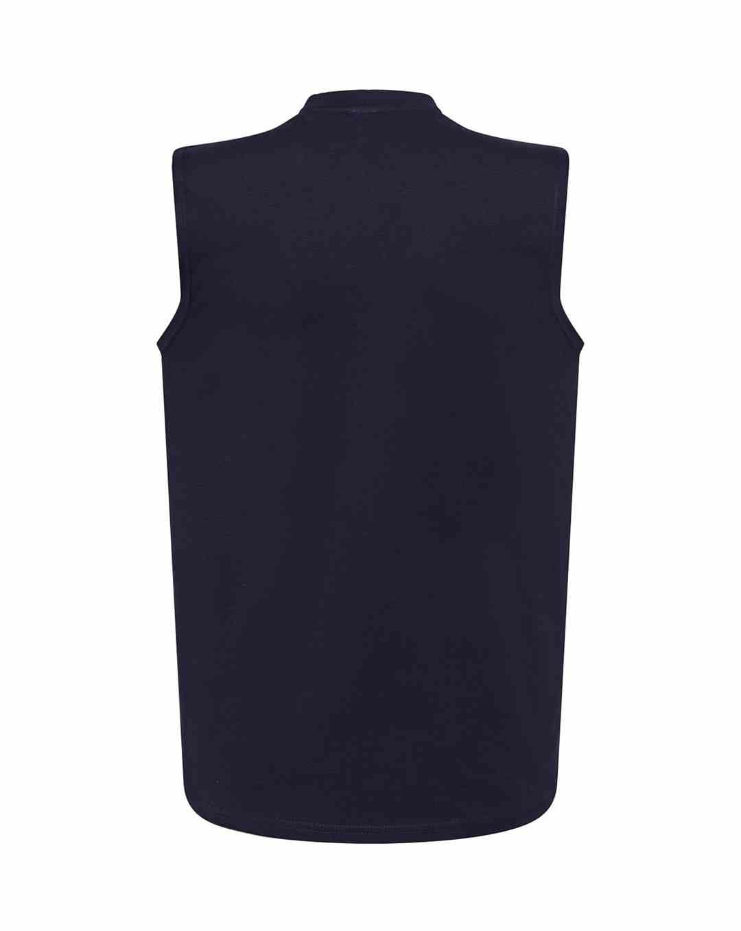 T-shirt męski bez rękawów. Single jersey. Podwójne szwy na ramionach i spodzie koszulki. 100% bawełna.